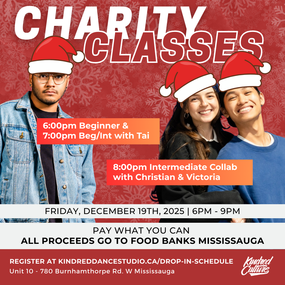 End the year with us with 3 charity classes! All proceeds will be going to Food Banks Mississauga @foodbanksmississauga